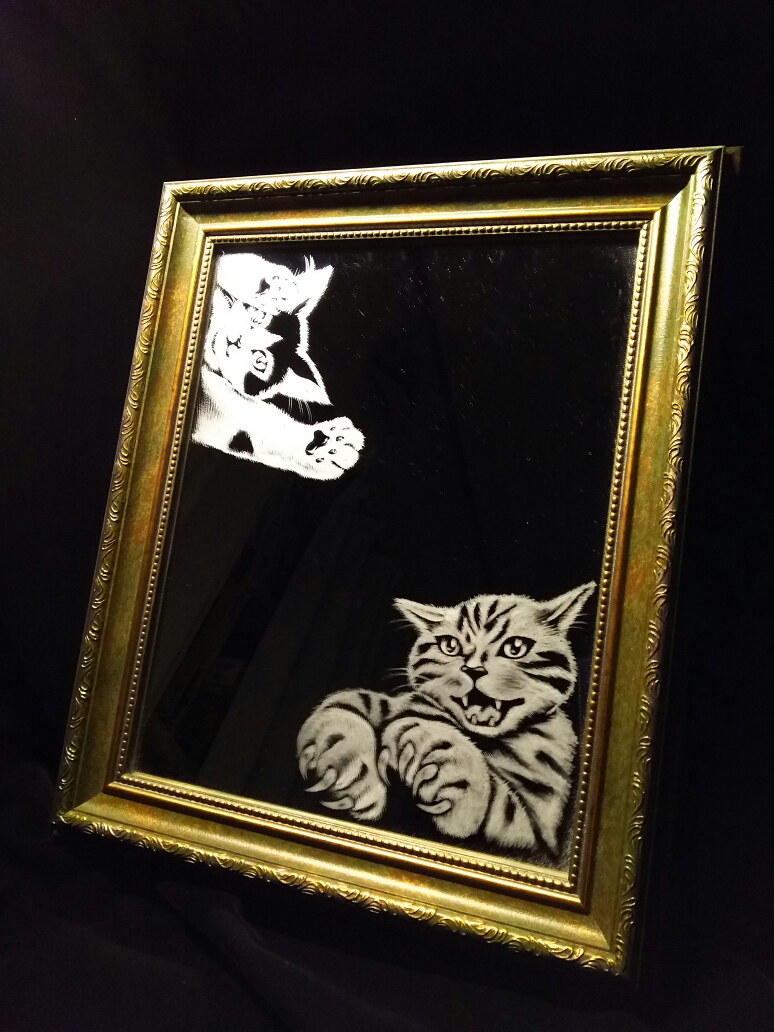 ちなみに、鏡もガラスですので「グラスリッツェン」での表現ができます。