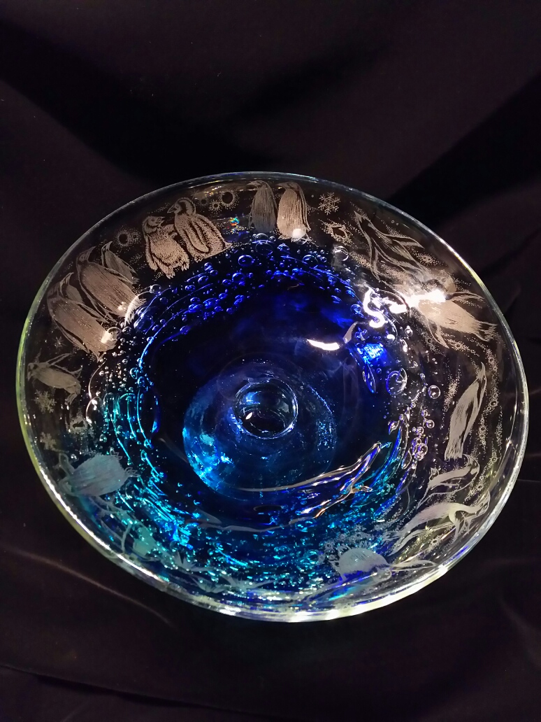 肖像画という用途から、額タイプの作品をご提案させて頂き、その中でもガラス板が2枚重ねの物を選び、絵柄の部分ごとに2枚それぞれの表から裏から彫り込んでみました。