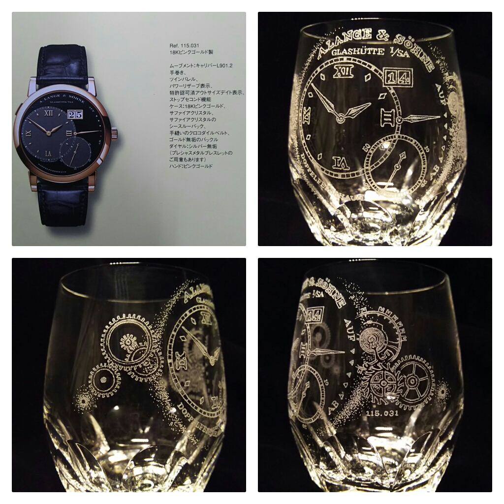 ご自身の腕時計コレクションをグラスに表現というご依頼です。