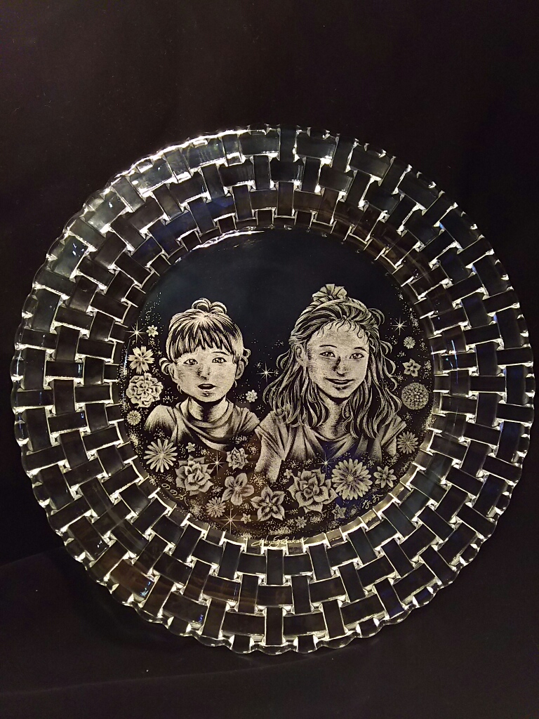 お孫さんの笑顔をガラス皿に、というご依頼作品です。