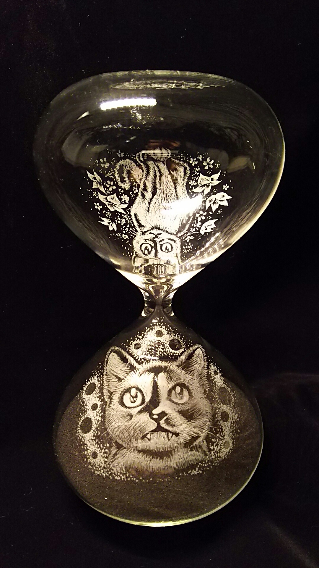 これは、サトミさんと愛猫ティティとの時間を砂時計に込めた作品です。