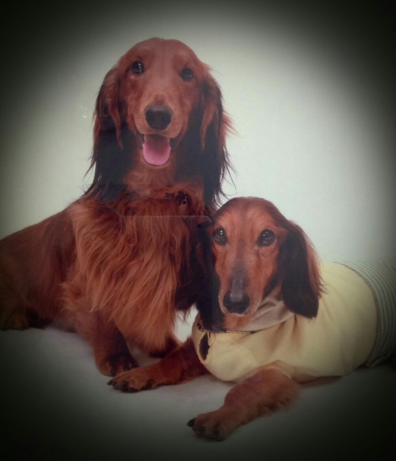 毛質や模様の違いはもちろん、飼い主さんを見つめる視線の角度による2匹の性格と個性。