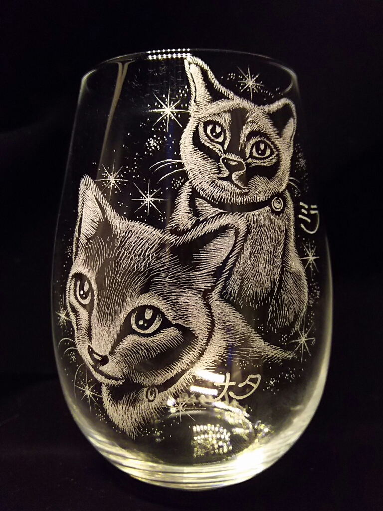 ご友人の飼い猫2匹をひとつのグラスに描き出しました。
